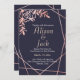 Convite marinho ouro, estrutura geométrica, casamento azul