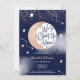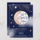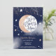 Azul giro Adorável Estamos sobre a festa de chá de fraldas neutro com script da Lua com ilustrações bonitinhas com lua brilhante rosa, estrela com edição azul marinho, sinais de zodíaco, nuvens. Com marinho azul editável.