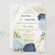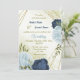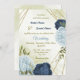Bonito convite para o casamento, com marinhos e flores azuis empoeiradas e folhas verdes Os detalhes da reluz do ouro são simulados. É adequado tanto para os convites para o casamento como para o noivado. PARA MAIS PRODUTOS CORRESPONDENTES, clique na coleção acima ou entre em contato comigo