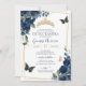 Convite Marinho Quinceañera Azul Borboleta Dourada