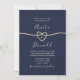 Convide seus convidados com elegância de eterno usando este convite romântico de casamento azul de marinho. Apresentando fontes de escrita suave, um símbolo cardíaco de corda dourada gracioso, e um layout moderno limpo, este design combina perfeitamente romance e minimalismo. Ideal para casamentos clássicos, formais ou de temas náuticos, oferece uma sofisticada paleta de cores que funciona lindamente durante o ano. Personalize facilmente o texto com seus nomes, data e local para coincidir com sua celebração.