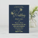 Convite de casamento simples e único com borboletas de ouro românticas e elegantes em fundo de marinho PARA MAIS PRODUTOS DE CORRESPONDÊNCIA clique na coleção acima ou entre em contato comigo.