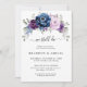 Elegante azul púrpura Lilac lavanda floral tema floral nós ainda fazemos Convite com buquê elegante de azul poeirento, Marinho, púrpura, cor lilás flores rosa e folhas verdes de eucalipto sábio. Entre em contato comigo para obter ajuda sobre a personalização ou se você precisar de outro produto com este design.
