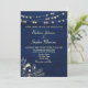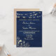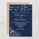 Marinho de madeira azul, elegante, moderno e rústico convite para casamento com renda floral dourada, luzes de cordas e roteiro de caligrafia. Escolha perfeita para o outono ou casamentos no inverno!