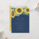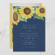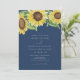Este convite para o casamento apresenta girassóis de cor d'água rusticados e uma fonte de guião manuscrita com um fundo azul marinho. Edite a maioria dos textos para atender às necessidades do seu evento e adicione sua própria foto ao fundo juntamente com seu site de casamento para um toque pessoal. Este convite para o casamento é perfeito para a sua festa de casamento temida no outono ou no país russo.