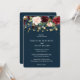 Convite Marinho Russo Borgonha Azul e Flores Vermelhas
