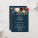 Convite Marinho Russo Borgonha Azul e Flores Vermelhas