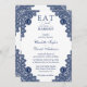 Elegante rústico marinho azul comido, beba e seja convidado de casamento inspirado por um lugar floral. Personalize facilmente estes convites para casamentos florais de chic rústicos para o seu país rústico, jardim, quintal ou festa de casamento de celeiro.
