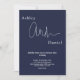 Este elegante convite de casamento azul marinho é perfeito para um casamento moderno. o simples design apresenta uma caligrafia branca elegante num fundo azul.