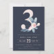 CONVITE MARINHO SUAVE NEGRO FLORAL AZUL 3º ANIVERSÁRIO DE