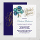 Convite Marinho Teal Blue Peony Flowers Chá de panela