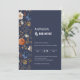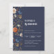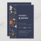 Um belamente pintado design floral com botânicos em tons de terra; enfeita este convite de casamento inspirado na Boêmia e na França-País. É um convite elegante impresso em uma fonte branca Abrilfatface. A carta de volta tem uma cor sólida e os nomes dos casais de casamento. Edite facilmente o modelo para a noiva e o nome do noivo e os detalhes do casamento. O convite juntou duas fontes sérvias tradicionais, criando um olhar elegante e moderno. Boêmian Painted Flowers Marinho Blue Rust Invitation. A cor azul do marinho é Hex #2B324B.