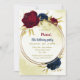 Belo convite de aniversário com marinho azul escuro e flores vermelhas e folhas de ouro. PARA MAIS PRODUTOS CORRESPONDENTES, clique na coleção acima ou entre em contato comigo