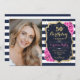 Convite Marinho White Stripes Dourado Foto Rosa 50º Aniver