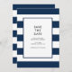 Este elegante, ousado, e moderno marinho e casamento listrado branco Salve a Data é extremamente tendencioso. Apresentando uma camada branca junto com o marinho azul, o texto é escrito na fonte sans serif mais popular da história. A parte traseira da placa apresenta o mesmo marinho em negrito e faixas brancas horizontais que as apresentadas na parte frontal. O convite perfeito para a noiva discriminadora, e parte de um convite, veja minha loja Zazzle.