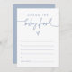 Este palpite é que o chá de fraldas do bebê comida apresenta uma fonte manuscrita boêmica, layout minimalista moderno e combinação empoeirada de cor azul e branca. Este jogo de bebês é perfeito para o seu evento de bebê de criança em qualquer altura do ano. As cores são totalmente editáveis para combinar com o seu estilo de evento.