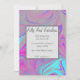 Um quadro de prata na moda e texto num convite de aniversário de mármore líquido, rosa, lacrimejante e azul.