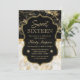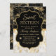 Convite Mármaco preto moderno, branco e Dourado doce 16