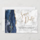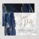 Este elegante e moderno salve a placa de data apresenta um marinho azul de aquarela agata borda cortada com falso brilho dourado. O texto personalizável combina um script de manuscrito dourado com fontes em preto e em itálico em um fundo branco e cinza. O verso apresenta um design de agate azul e dourado correspondente.
