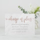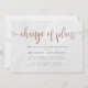 Convite Mármore Branco & Ouro Rosa Escrito Mudança de Plan