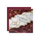 Celebre seu amor eterno com este design requintado que apresenta uma textura de mármore branco e burgundy rica, acentuada por veias de folha de ouro falso. O design exibe uma silhueta romântica de uma noiva e um noivo dentro de um coração floral, combinado com anéis de casamento entrelaçados. Perfeito para casamentos, aniversários ou festas de noivado que buscam um toque de elegância moderna e luxo atemporal.