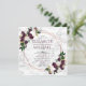 Moderno, moderno e absolutamente deslumbrante, este design de convite de casamento quadrado apresenta uma geometria falsa de cobre sobre uma textura falsa de mármore branco, e é embelezado com lindos buquês roxos de ameixa marsala e flores brancas com um verde profundo e rico. Os nomes dos casais e alguns detalhes do casamento estão naquela próspera e rica ameixa roxa burgundy, que é da mesma cor que está na parte de trás do cartão. Perfeito para um Casamento outono moderno. Convidados Elegantes de Direitos Autorais. Todos os direitos reservados.