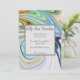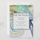 Um quadro de prata na moda e texto num convite de aniversário colorido de mármore líquido.