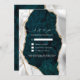 Convite Mármore Teal, Casamento Ágata Branco e Dourado RSV