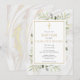 Com folhas delicadas em aquarela e um elegante crucifixo dourado. Este convite de batismo | batizado com mármore em redemoinho de aquarela pode ser personalizado com as informações da sua celebração especial. Criado por Thisisnotme©