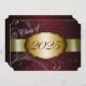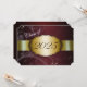 Convite para formatura de Maroon e Ouro com Flóral de Maroon Claro e Negro e fita de ouro passando mostrando o ano de formatura. A parte traseira do cartão é marrom com fonte de ouro claro para as pessoas preencherem os anúncios de graduação.