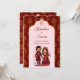 Maroon e ouro, bonitinho casal de noiva indiana, caricatura química, convite para casamento hindu, convite editável para transferência digital instantânea de modelo, armação de porta indiana, marrom rosa de fundo pastel e borda dourada, tudo em um com texto RSVP Convite para casamento indiano com personagens de desenho animados bonitinhos