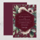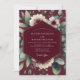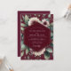 This elegant and romantic design features a dramatic composition of lush botanicals. Painterly blooms in shades of off-white and dusty rose are nestled amongst rich sage green eucalyptus leaves. This beautiful arrangement is set against a deep maroon background, creating a sophisticated and moody atmosphere for a fall or winter affair.