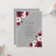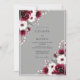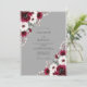 Deep maroon peonies and crisp white blossoms are paired with delicate snowy berries in this winter-inspired design. The cool charcoal gray background provides a striking contrast to the rich floral tones. This botanical arrangement offers a sophisticated and polished aesthetic for seasonal nuptials.