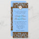Convite Marrom Damask On Powder Blue Weding Invitation