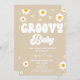 Convite Marrom Retro Daisy Flower Groovy Chá de fraldas