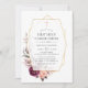Boho burgundy red e blush cor-de-rosa, primeiro convite de comunião santa, com peonias e rosas com estrutura geométrica dourada personalizável para suas especificidades de evento.