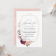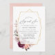 Boho burgundy red e blush cor-de-rosa sip floral e veja o convite de festas com peonias e rosas com quadro geométrico dourado personalizável para suas especificações de evento.