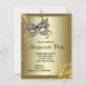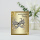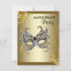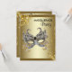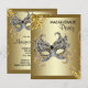 Convite de festa de aniversário de máscara preta e dourada. Adicione seus detalhes na frente e atrás simplesmente adicionando os detalhes do seu evento, estilo de fonte, tamanho e cor da fonte e texto. Este é um design impresso sem pedras preciosas, jóias, brilho, etc.
