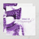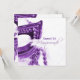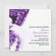 Um convite de festas na moda com um tema mascarada apresenta uma máscara de mascarada roxo e miçangas em fundo de pena branca, com a palavra "mascarada" em uma fonte de script de rico. Exibido como um convite do Sweet 16, mas pode ser personalizado para um Quinceañera, Mardi Gras ou qualquer evento com tema de mascarada.