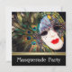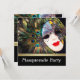 Máscara de masquerade elegante em roxo lavanda e contas douradas com pena de pavão, convites para festa de máscaras. Esta dramática máscara de masquerade que cobre todo o rosto com faixa dourada é perfeita para uma festa de máscaras de sweet sixteen, festa de máscaras de Quinceanera, festa de aniversário com máscaras, feriado, festa de Mardi Gras, festa de Carnaval, baile de formatura com máscaras, ou qualquer outro evento festivo! Escolha o botão laranja "Personalize!" para personalizar a frente e o verso com os detalhes do seu evento. Escolha seu próprio estilo de fonte, cor, tamanho, texto, etc.