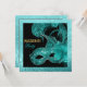 Mascarada quinceañera 15.a festa de aniversário azul turquesa, faux aqua foil, com uma máscara de turquesa veneziana com penas sobre fundo negro com uma borda de folha aqua falsa com textura esmagada e texto dourado. Um perfeito design de modelo para sua bola de mascarada de quinceañera ou fiesta de quince años, fiesta de quinceañera, marmelada ou até mesmo doce 16 festas de masque. Note que não existem folhas, máscaras ou penas reais, mas todas elas são "impressas em".