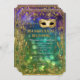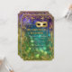 Quer um convite para o tema do casamento do Mascarada festivo elegante que seja elegante e bonito? Este design, tem uma borda brilhante de olheira de quadros e uma máscara sequenciada Dourada com estilo de vintage (NOTA: este é um convite impresso plano que não é usado nenhum brilho dourado ou folha metálica ou tinta metálica) sobre um brilho profundo e rico de boque, luzes cintilantes em fundo profundo, roxo, azul, aqua e verde. O lado inverso é o plano de fundo das luzes delimitadoras que coincidem com o quadro. Altere facilmente o texto usando os campos modelo fornecidos. Eterno, estilo clássico tradicional com uma reviravolta moderna para uma elegância de gravata negra.