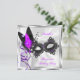 Convite Máscara Preta Prateada Roxa com Brilho para Festa