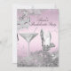Convite de Festa de Despedida de Solteira Prata e Rosa. Elegante renda de joias prateadas com máscara de pena de diamante e saltos com brilho cintilante. POR FAVOR, OBSERVE que todas as imagens planas! Elas NÃO têm Renda, Diamantes ou Joias reais!!