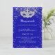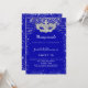 Para um Mascarada elegante, 16, 16 anos. Um fundo azul real. Decorado com pó falso prateado brilhante e uma máscara de mascarada. Personalize e adicione um nome, idade e detalhes da festa. O nome é escrito com um script de estilo manuscrito