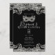 Convite Mascarada de 15 de renda preta e prata Quinceañera