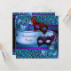 Máscaras de Mardi Gras com impressão de leopardo azul turquesa e roxo e pena, convite para a festa de máscaras dos dezesseis anos. Este convite é totalmente personalizável para a sua festa ou evento. Clique no botão "Personalize!" e você pode adicionar os detalhes da sua festa na frente e no verso.