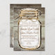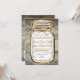 Estes convites de casamento rústicos têm um jarro de mason castanho bronzeado com um design de arco gêmeo em cima de um fundo de madeira de celeiro angustiado. O arco gêmeo e a madeira de celeiro são apenas designs impressos. Este é um convite impresso em formato plano, com impressão a cores de cheio em ambos os lados sem custo adicional. A parte de trás do convite de casamento tem o fundo de madeira de celeiro e um pequeno pote de pedreiro no canto com a palavra "Amor" em script. Basta inserir o texto do convite de casamento nos pontos de modelo ou usar o botão "Personalizar" para mover as coisas, mudar a cor ou o estilo da fonte ou adicionar mais linhas de texto. Estes são excelentes anúncios de casamento no país para casais que vão se casar em um local de casamento do celeiro ou qualquer casamento no estilo do país que será decorado com mason jars.Cartões de mason combinando e cartões de resposta RSVP de madeira de celeiro disponíveis separadamente. Isso também seria bom para um casamento ocidental. Desconto Preços de Venda ao solicitar mais de 50 convites.