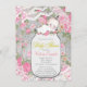 Meninas adoráveis vintage rosa mason jar com flores cor-de-rosa e convite para chás de fraldas de rendas. Este doce convite de chá de fraldas de jarro mason é facilmente personalizado para o seu evento, adicionando os seus detalhes no estilo de letra e cor, bem como o texto da sua escolha.