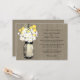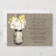 Perfeito para um casamento no estilo country ou talvez você apenas ame Mason Jars! Mason Jar pendurado num gancho cheio de flores selvagens do campo. Um painel de fundo de grãos de madeira (X07531) de Taupe Escuro contra o enforcamento de Mason Jar com Billy Balls amarelos e margaridas brancas selvagens. Se você tiver alguma dúvida sobre este design ou quiser uma mudança de cor, envie um e-mail para mim paula@labellarue.com Além disso, verifique se os Cartões SENTADOS RSVP, RECEPÇÃO e CONVIDADO correspondem!